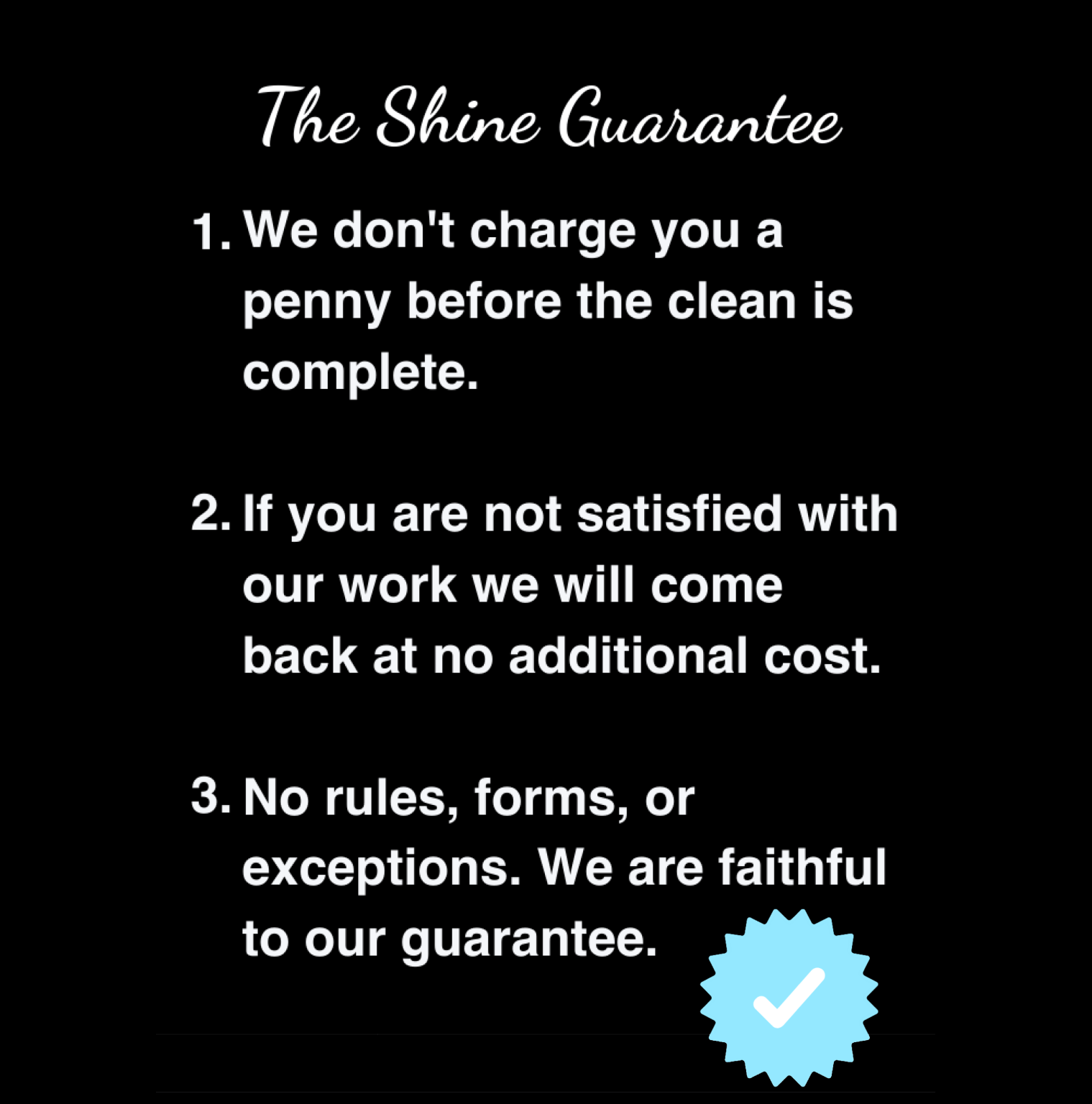 We guarantee the quality of our cleaning so you dont have to worry about paying for a service that doesn’t meet your expectations.